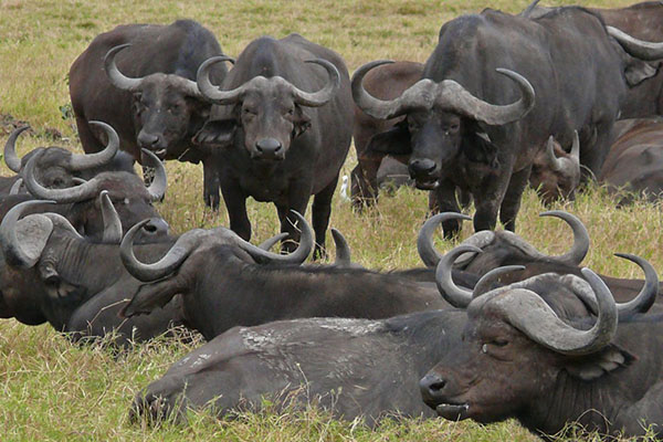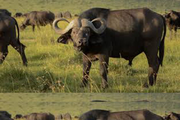 Kenya Buffalo is a massive, moody and dangerous animal. Its main diet is grass, but at times leaves and buds make up the greater part of its feeding. It kills more people than lions or crocodiles.