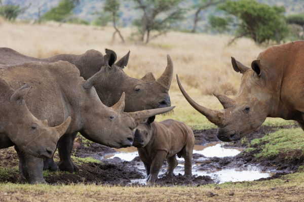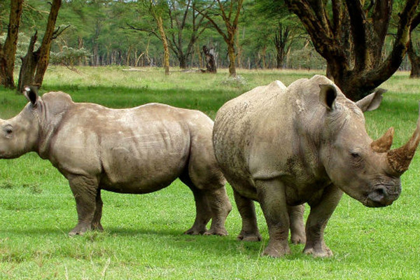 On its part the white rhino has a wide upper lip and a Iarge hump at the top of its neck. The former feeds on leaves, shoots and buds, but the latter exclusively on grass and is less solitary than its black counterpart. They live in small family groups. They are found in Lake Nakuru, Nairobi, Meru and Tsavo West national and the 0l Pejeta and Lewa conservancy.