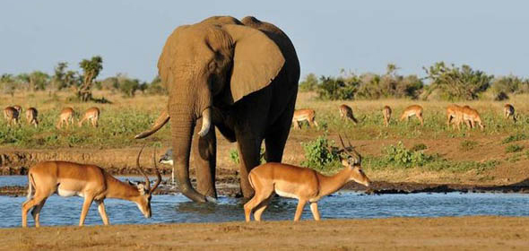 This, the largest section of the park is so vast visitors can explore the park in relative privacy not available at the other game parks. The Voi River's wooded areas have large numbers of game with Mudanda Rock particularly good for viewing large herds of Elephants. A main focus of the park is the lovely Aruba Dam that's visited by thousands of animals on any given day. In the Northern section of the park the spectacular Ligard's falls with its relentless volume of water crashing down on the craggy rocks below. For additional crocodile and hippo viewing Crocodile Point is a short trip from the falls and can be worth the trip.
